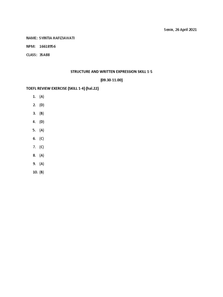 Toefl Exercise Skills 11 13 Youtube from i.ytimg.com (b) he washed some clothes this morning. Play this game to review english. The chairs (under the table in the dining room) is quite comfortable. The wedges _____ dart board are worth from one to twenty points each. Taking skills, show you a few tricks and increase both your competency and confidence. (a) it's the middle of the winter. Upgrade and get a lot more done! Latihan soal toefl review exercise 9 (skills 1 to 36) terkait structure & written expression, pembahasan toefl part 1, 2, 3, 4, 5, 6, 7, 8, 9, dan 10